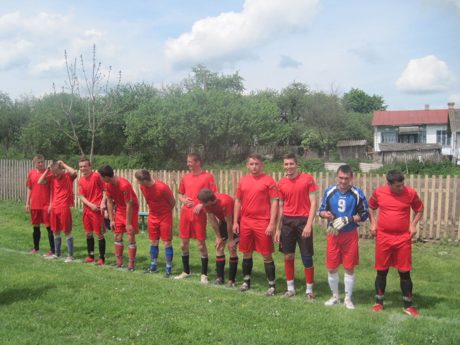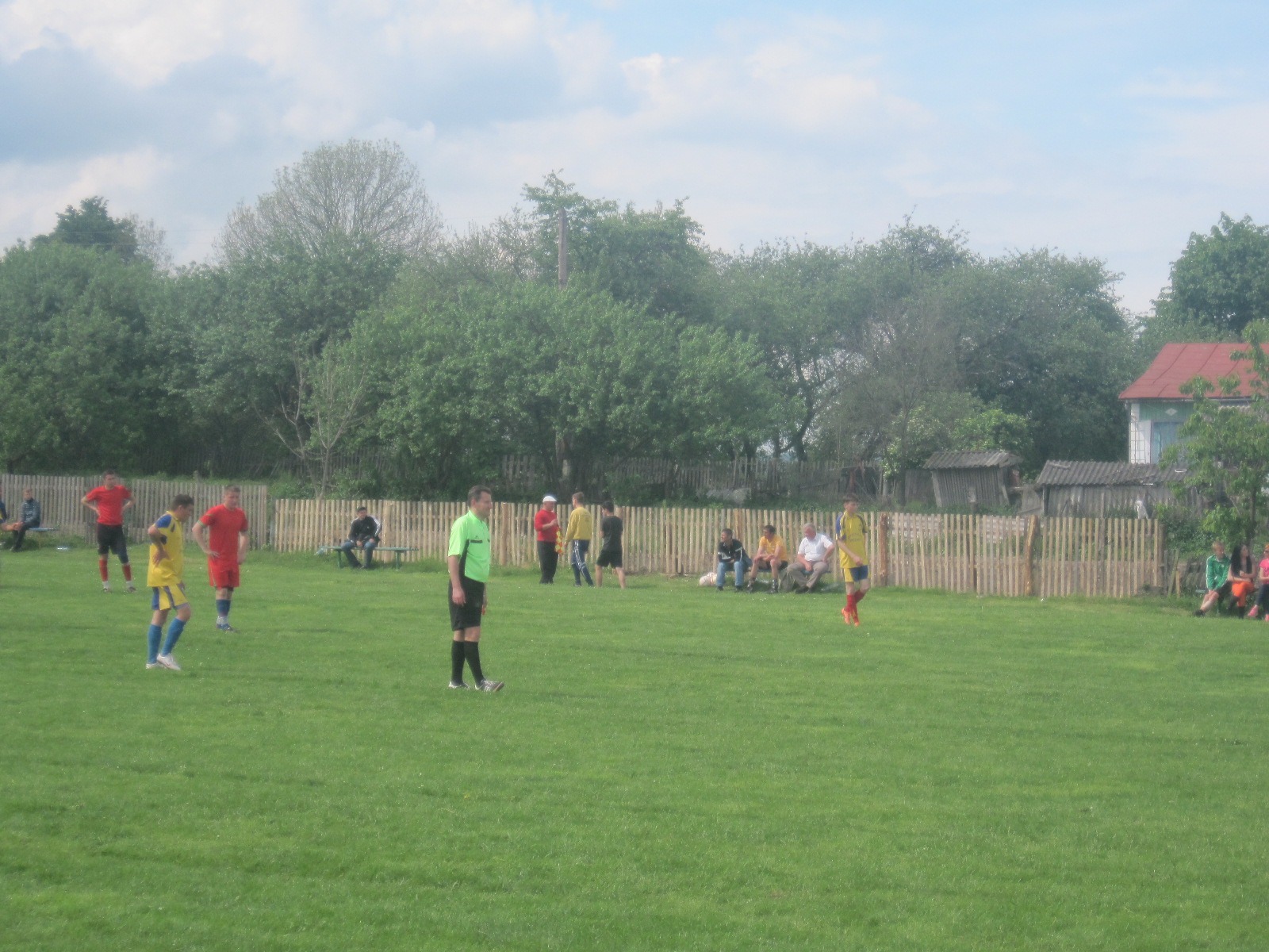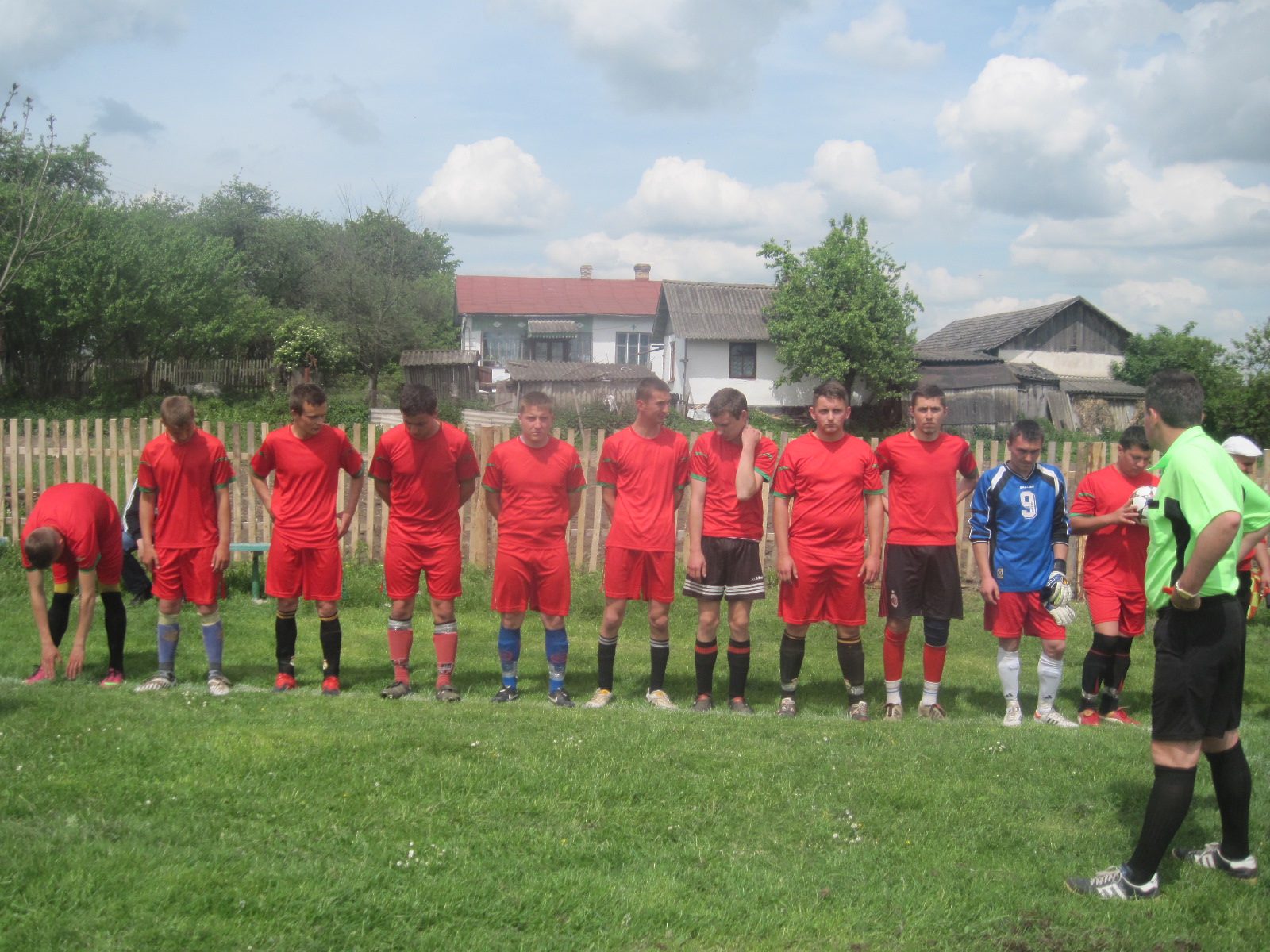 Футболісти, арбітр, вболівальники